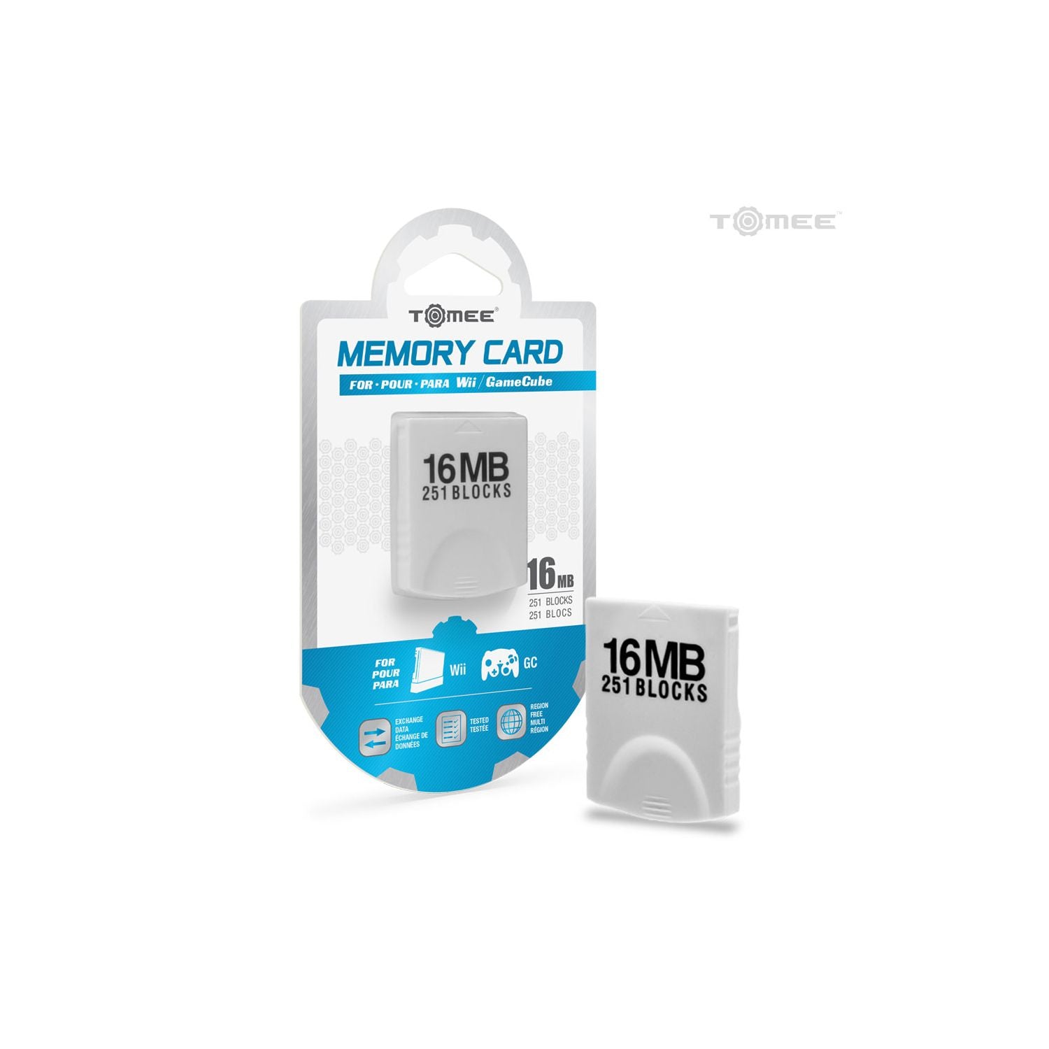 Take your games further with the Tomee Memory Card for Wii®/ GameCube®. Equipped with 251, 507, 1019, or 2035 blocks of memory, the Tomee Memory Card for Wii®/ GameCube® can save or reload your game data. don't play your games without it.